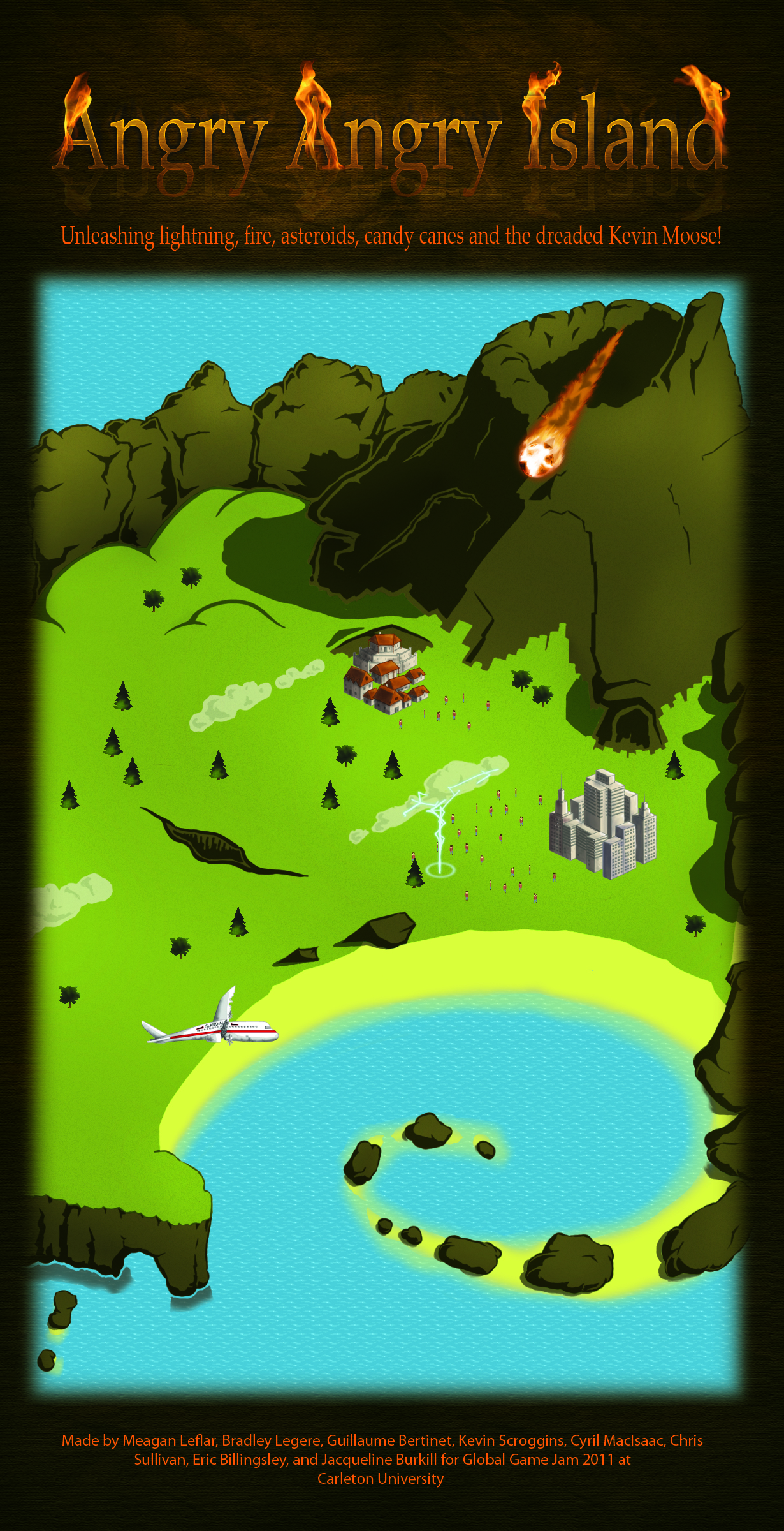 Angry Angry Island is a game I helped create at Global Game Jam 2011 over a period of 48 hours. The team consisted of the following people: